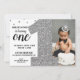 Este Primeiro Aniversário Faux Silver Glitter Invitation é perfeito para qualquer pequeno que comemore um primeiro aniversário!