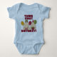 Os gêmeos fazem o primeiro aniversário de T-shirts, fatos-chave, autocolantes, cartões, posters, guardas e mais gêmeos nos chapéus e balões de festa e texto que diz "Gêmeos Primeiro Aniversário!".