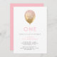 Convite de festas cor-de-rosa e primeiro aniversario de ouro, com um balão de ouro e brilho cor-de-rosa. A design é minimalista e elegante e é perfeita para a sua garotinha. O convite pode ser personalizado com o nome da sua menina e os detalhes da festa. A design baseia-se no primeiro aniversário, mas pode ser editada para incluir qualquer idade.