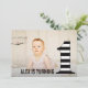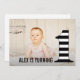 Um padrão de listras preto e branco moderno enfeita o gigante número 1 na frente deste convite fotográfico. Cada convite contém um envelope de tamanho de correspondência gratuito incluído no custo do barato.