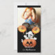 Pumpkin bonito com um fantasma bebê e balões Primeiro Cartão com fotos de Halloween do Bebê. Mostre suas memórias com seus amigos e família. Também estão disponíveis selos e autocolantes correspondentes.