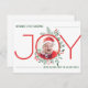 Celebre o primeiro Natal do seu bebê com este cartão adorável e único! A palavra "JOY" aparece em caracteres ousados e festivos, com a fotografia do seu bebê perfeitamente enquadrada no centro do "O". Personalize-o com o nome do seu filho e a mensagem sincera, "Feliz feriado da família". Uma bela manutenção que espalha amor e alegria aos amigos e à família. Recursos 🎄: personalização de fotos no "O" de "JOY" Personalizável com Na moda de saudação de nome e família e design de feriado memorável