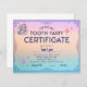 Certificado super fofo da Fada dos Dentes. Personalize o nome, a data e a assinatura.