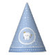 O primeiro chapéu azul de bebê da festa dos dentes com personagem de fada de desenho animado e estrelas brancas. Visite o compro para obter mais itens da primeira festa dos dentes!