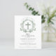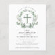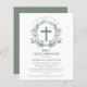 Escolha elegante para o primeiro convite de um garoto. Uma coroa verde-sensual de eucalipto cai uma simples cruz no topo. Todo o texto pode ser editado.