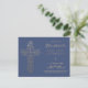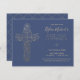 Este moderno convite de primeira comunhão apresenta uma intrincada cruz de estilo "folha de ouro" (simulada) e as palavras "Primeira Comunhão" numa fonte moderna. O plano de fundo é marinho azul, mas pode ser personalizado para qualquer cor de sua escolha.