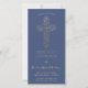 Este belo convite da Primeira Comunidade Santa apresenta uma ilustração cruzada floral de folha de ouro simulada com a palavra "Primeira Comunhão" em na moda correspondente. Há um fundo azul marinho que pode ser alterado para qualquer cor de sua escolha. O texto (palavras e cor) pode ser personalizado para a ocasião religiosa especial do seu filho ou filha.