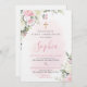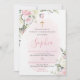 Um adorável modelo de convite da Primeira Comunhão com flores cor-de-água rosa e bege para meninas.