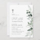 cartão de convite para a primeira comunhão moderno, de aquarela verde. O texto e as cores podem ser editados.