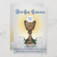 Primeiro convite de comunhão com cálice de ouro e rosas brancas. Design personalizado