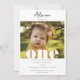 Um belo Convite de festas primeiro aniversario com sua foto e texto personalizados. Um arco moderno vai armar sua bela foto criando um na moda moderno primeiro convite de aniversário. Personalize a idade de aniversário "um" até à idade de aniversário e crie um convite de festa de aniversário para um rapaz ou uma rapariga.
