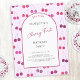 Bonita e moderna aquarela Cherry First convite de aniversário. O dorso apresenta um par de cerejas que combinam para uma ajuda extra da doçura. Personalize o texto para se adequar à sua celebração. Arte original de Nic Squirrell