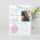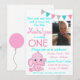 Ela é fofa, doce e muito divertida! Convite de aniversário de elefantes cor-de-rosa com balão nas costas.