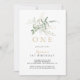 Este primeiro convite de aniversário de folhagem verde-dourada é perfeito para uma festa de aniversário rústica. Este design artístico apresenta a aquarela desenhada à mão, ouro e folhagem verde, inspirando beleza natural.