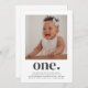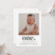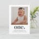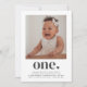 Um primeiro aniversario moderno com sua própria foto e a palavra "um" com um coração por baixo. Você também pode editar toda a cor e estilos do texto, além da cor do coração, se quiser. Basta clicar no botão 'Personalizar' -> 'Editar usando a ferramenta design'.