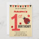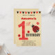 Convite de aniversário com tema de joaninha giro e combinação de cor preta e vermelha.