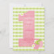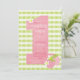 Primeiro Convite de aniversário de Morango Rosa, Grande Aquarela 1 com Gingham Verificado em Fundo Verde.