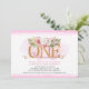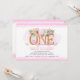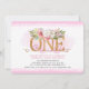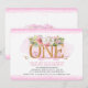 Tão doce, com um toque de conto de fadas - perfeito para o seu primeiro aniversário! Apresenta letras douradas com elegantes flores de aquarela e verde, todas em um fundo branco escalado e borda rosa. Fácil de personalizar com os detalhes do seu partido. A parte traseira apresenta um buquê floral, fundo branco redimensionado e borda cor-de-rosa. Design ©Rosalind Moore, Design de Cherry Lane.