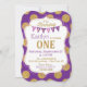 Impressão de pontos roxo e dourado com cartaz de ancoragem com cartaz de aniversário sobre um design de cartão de convite de aniversário dourado.
