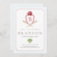 Suba ao prato com este ousado convite de aniversário de baseball vermelho. Apresentando uma crista personalizada e um movimento desportivo tradicional, esta design é ideal para uma celebração clássica do estilo "novato do ano".