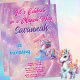 Torne o primeiro aniversário da sua filha inesquecível com este convite de unicórnio encantador! Esta design apresenta um fundo de galáxia roxa e cor-de-rosa pastel sonhador com estrelas brilhantes e um unicórnio fofo. A letra elegante do script adiciona um toque de sofisticação, enquanto o colorido arco-íris número um adiciona um elemento lúdico. Personalize o convite com os detalhes do seu partido para uma celebração verdadeiramente única e mágica. Este convite é perfeito para uma primeira festa de aniversário com tema de unicórnio que seus hóspedes não esquecerão.