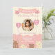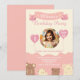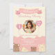 Este adorável primeiro convite de aniversário apresenta um esquema de cor rosa suave e bege com ilustrações bonitinhas de ursos de peluche ao longo do fundo. Uma seção de fotos personalizável permite personalizar o convite com a foto da criança de aniversário. Escrita elegante e fontes lúdicas destacam os detalhes do evento, fazer-o uma escolha perfeita para uma celebração doce e encantadora. Personalize para um toque pessoal!