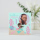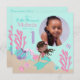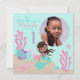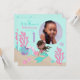 Pequena carta de convite de aniversário da sereia com criaturas submarinas.