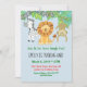 Convites personalizados. Ajuste o texto para torná-lo seu. Mão desenhada, bonitinha, ilustrações adoráveis de animais da selva. Tema azul claro e branco, fundo listrado constituem esse design de aniversário fofo. Primeiro aniversário. Zebra, leão e macaco.