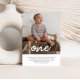 Um simples convite de Primeiro Aniversário com sua própria foto e as palavras 'um' sobre o topo em uma fonte de script.