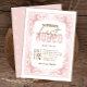 Celebre o grande dia de sua vaquinha com este convite de aniversário rosa "Primeiro Rodeio". Apresentando elementos design ocidentais encantadores e tons cor-de-rosa suaves e poeirentos, este convite personalizado é perfeito para uma festa de primeiro aniversario temático da menina rústica. Personalize com os detalhes do evento e prepare-se para reunir os convidados para uma diversão de aniversário!