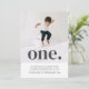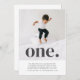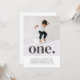 Um simples convite para o Primeiro Aniversário com sua própria foto e a palavra 'um' sobre o topo.