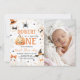 Comemore o seu primeiro aniversário de abóbora com este adorável convite fotográfico assustador. Apresentando fantasmas de aquarela, abóboras, morcegos e teias de sabugo em tons pastéis suaves, esta design combina vibrações doces e assustadoras. Personalize com a foto do seu filho e os detalhes da festa para um memorável primeiro "boo-day". Perfeito para uma celebração de primeiro aniversário inspirada no Halloween.