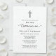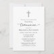 Primeiros cartões de convite da Comunidade, com uma Cruz prateada projetada de forma realista. A elegante tipografia do cartão apresenta uma fusão de um único roteiro de tinta manuscrito e texto moderno minimalista, tudo em tons de prata, platina e tinta preta. A placa em si é branca ou pode ser alterada simplesmente editando o design e escolhendo a cor desejada. Disponível em impressão de alta qualidade ou para download, oferecendo formato de download digital instantâneo para mensagens de texto, e-mail ou postas de mídia social.