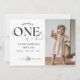 Primeiro convite de aniversário com flores silvestres e uma foto do convidado de honra. Convite branco e claro horizontal com flores silvestres a rosa, coral, amarelo e azul claro. O seu pequeno é "Um tipo!"