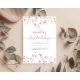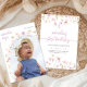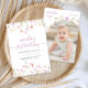 Marque o marco do primeiro ano do seu bebê com o nosso Primeiro Convite de Aniversário de Flor Selvagem, enfeitado com flores silvestres roxas e cor-de-água rosa. No verso, espera-se um encantador quadro fotográfico de arco com uma borda floral, permitindo-lhe mostrar um dos seus momentos de precioso. Totalmente personalizável, este convite promete criar uma manutenção cuidada desta ocasião especial.