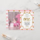 As listras cor-de-rosa e as bolinhas com brilho dourado são apresentadas no primeiro convite fotográfico de aniversário desta menina clássica. Use o formulário modelo para adicionar os detalhes da sua parte. O recurso Personalizar pode ser usado para adicionar texto à parte traseira ou alterar o estilo da fonte.