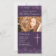 Este elegante e bonito cartão com fotos da Primeira Comunhão ilustra flores roxas e rosadas margaridas com uma cruz correspondente. O texto e a foto podem ser alterados de acordo com o seu gosto. Uma forma perfeita e personalizada de convidar amigos e família para o sacramento religioso muito especial da sua filha.