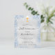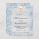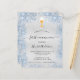 Fundo metálico de aspecto fino prateado decorado com poeira azul esmaecida poeira brilhante, um cálice de ouro e um hospedeiro. Personalize e adicione um nome e detalhes de recepção. Letras pretas coloridas.