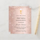 Um fundo de aparência metálica falsa rosa dourado. Decorado com rosa dourado, cintilação falsa rosa, faíscas, chalice e um hospedeiro. Personalize e adicione um nome e detalhes. O nome é escrito com um script de estilo manuscrito