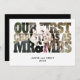 Uma tomada bem moderna da sua saudação de Natal este ano, este efeito de tipografia de aparência tipo "espiã-boo" recortado faz da sua foto parte da design. Uma grande carta ousada diz "NOSSO PRIMEIRO NATAL COMO SR. & MRS." com seu retrato espiando as letras. Uma saudação perfeita para recém-casados contemporâneos celebrando seu primeiro Natal como marido e esposa.