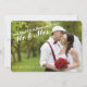 Duas fotos de grandes dimensões, tanto na frente como no verso, aproveitam ao máximo esta carta plana de canto arredondado com tipografia cursiva de na moda, de cor branca, no canto superior esquerdo, onde se lê: "O nosso primeiro Natal como Sr. & Sra." Um encantador amor moderno para enviar para a família e amigos que celebra seu primeiro Natal como marido e mulher.