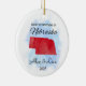 Um Ornamento Personalizado do Estado de Nebraska usado para celebrar o primeiro Natal a viver juntos como casal, família ou recém-casados nos Estados Unidos da América. Celebre sua primeira temporada de férias no estado de Nebraska com nosso adorável ornamento de "Estados Americanos". Essa manutenção personalizada é a adição perfeita à sua árvore de Natal, servindo como um lembrete eterno do seu primeiro Natal juntos — um momento que você vai apreciar por anos. Design personalizado: Adicione seus nomes e data para criar uma manutenção única que é exclusiva de vocês. Presente perfeito: uma escolha cuidadosa e apreciada para recém-casados e novos donos de casa. Uso versátil: mais do que apenas um ornamento em árvore! Mostre esta bela manutenção no seu ano de casa como um lembrete duradouro do seu ano especial. Nosso ornamento "Estados Americanos" é mais do que apenas uma decoração — é uma emocionante mania, simbolizando o início de sua jornada juntos. Cada ornamento é meticulosamente trabalhado para capturar a alegria e o amor de sua primeira temporada de festas em sua nova casa encontrada.
