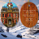 Primeiro Natal no nosso novo ornamento de fotos caseiras. Adicione uma foto da nova casa a um lado e personalize a parte traseira com a data estabelecida, o endereço e os nomes dos membros da família.