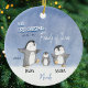 Celebre o primeiro Natal do seu bebê da forma mais adorável com o nosso Encantado Primeiro Ornamento de Natal. Este ornamento personalizado apresenta uma família encantadora de pinguins em uma cena de neve de inverno, fazer-a como a perfeita manutenção para a mãe, Pais, e quando o bebê faz três. Com a opção de adicionar nomes de monograma, este ornamento torna-se uma lembrança apreciada que captura a alegria e o amor do seu primeiro Natal como uma família de três. Segure na sua árvore e crie memórias duradouras que você pode cultivar por anos.