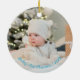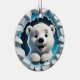 Este adorável ornamento é a forma perfeita de comemorar o primeiro Natal de um bebê. Apresentando um urso polar fofo e sorridente a espreitar através de um design de gelo rachado, esta encantadora manutenção pode ser personalizada com texto e uma foto de bebê nas costas. É um belo e memorável presente para novos pais e uma doce adição a qualquer árvore de Natal.