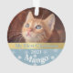 Celebre o primeiro Natal do seu gatinho com este ornamento personalizado. Com um fundo de azul com flocos de neve brancos, apenas adicione o nome do seu gato e o ano junto com duas fotografias ou seu lindo felino!