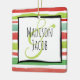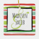 Celebre seu primeiro Natal como um casal engajado com este moderno ornamento personalizado com faixas de doces de Natal em vermelho, verde e branco com a moderna tipografia negra em branco com uma linha de fronteira clara e ondulada. Personalize-o com os seus nomes na frente e "First Christmas Engaged" com o ano atrás. Projetado por © Tim Coffey.