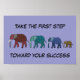 Ilustração gráfica de elefantes africanos coloridos. Esse poster de motivação é perfeito para as salas de aula ou qualquer ambiente de trabalho.