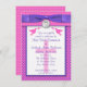 Convide todos os seus amigos e família para uma casa aberta em homenagem à primeira comunhão da sua filha. Este convite para bolinhas cor-de-rosa, branco e roxo tem uma fita roxa IMPRESSA com arco nela, junto com um charme prateado IMPRESSO em FAUX gravado com um copo de vinho ou cálice nela, e duas pombas de paz com uma cruz rosa esmaecida no fundo. Parte do design é um padrão de tecelagem de cesta FAUX. O papel e todo o texto são personalizáveis. Se você precisar de qualquer outro item neste estilo de design, envie seu pedido por e-mail para niteowlstudio@gmail.com.