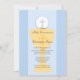 Comece o seu evento com o nosso convite para a Primeira Comunhão. O convite apresenta uma borda de faixa de pinos azuis com um cálice e um holst dourados. Fácil de personalizar, basta adicionar suas informações de fotos e eventos e você está pronto para ir. ©Zenware Designs